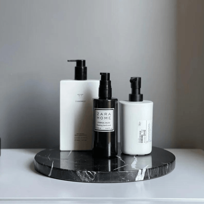 Le plateau en marbre trouve naturellement sa place autour du lavabo ou sur une console. Il accueille vos flacons de savon liquide, vos crèmes et même des objets décoratifs comme une petite plante verte. Son design rond adoucit les lignes de votre salle de bain, créant un point focal élégant et pratique.