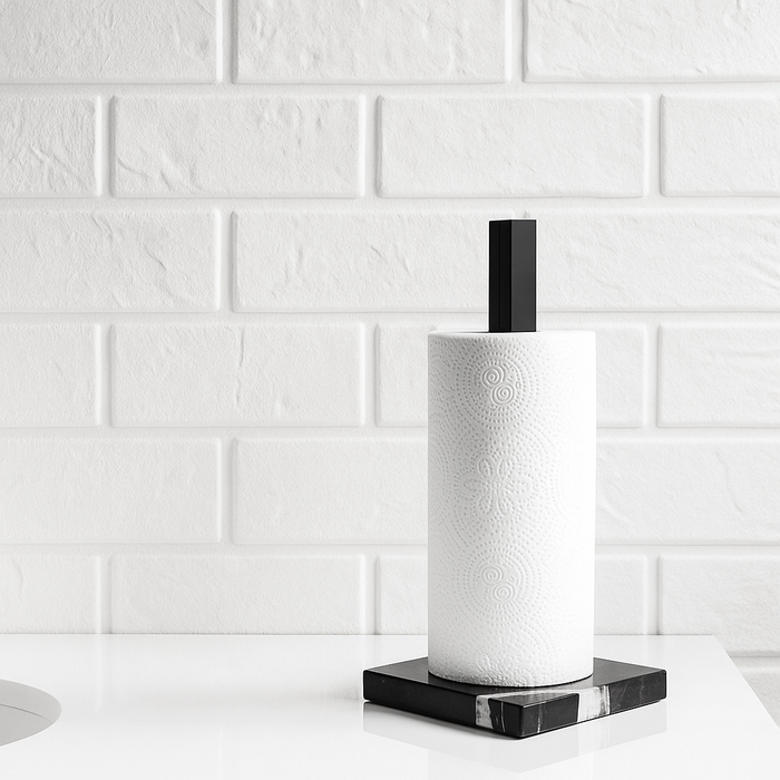 Le porte-rouleau en marbre & bois est pensé pour une utilisation quotidienne pratique. Son système permet un changement rapide et facile du rouleau. Côté entretien, un simple chiffon humide suffit pour préserver l’éclat du marbre et la beauté naturelle du bois.